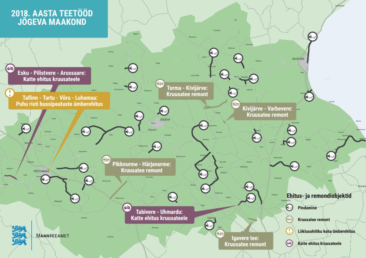 Selleks aastaks on maanteeamet planeerinud Jõgeva maakonnas kokku seitse suuremat teetööd, mille hulgas on nii teekatte ehitamist kui ka kruusateede…