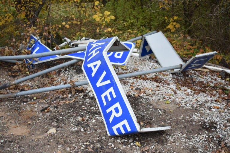 Lömmis liiklusmärgid lebavad tee ääres