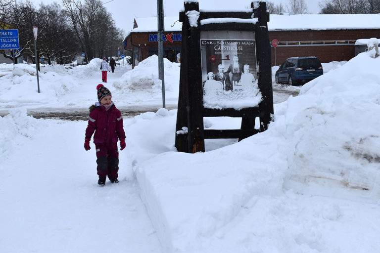 Väike inimene lumevalli taga võib jääda autojuhile märkamatuks. Pilt Põltsamaa kesklinnast. FOTO: TAIMI LUTSAR Tänavune talv on kaasa toonud lumeuputuse.…...