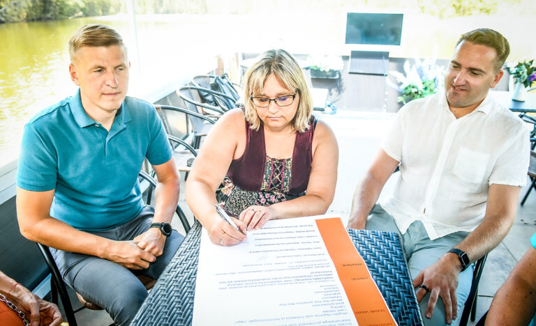 Aive Tamm kirjutamas alla koostöökokkuleppele Tartu Filmifondiga. Vasakul Tiit Toots ja paremal Sven Tobreluts. FOTO: MARIA KILK Kolmapäeval, 21. juunil…