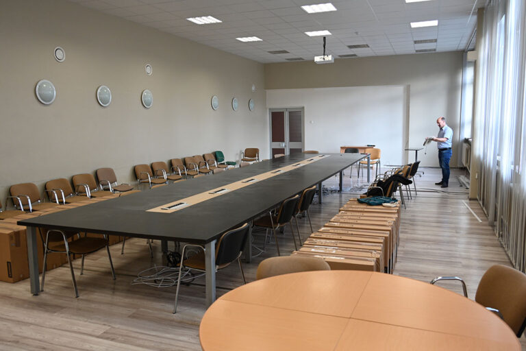 Teisipäeval pakiti lammutamisele minevas majas volikogu saalis kokku inventari. FOTO: TIIT LÄÄNE Viimane nädal on Jõgeval Piiri 4 majas olnud…