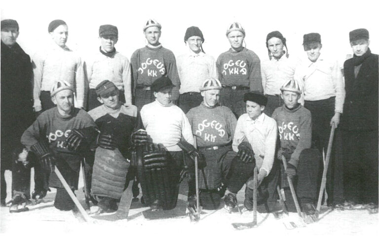 Võidukad Jõgeva hokinoored koos maaspordiühingu Kolhoosnik mängijatega ühisel pildil 1952. aasta talvel. Taga vasakult Valdur Rajalo, Väino Rannamäe, Harry Laos,…...