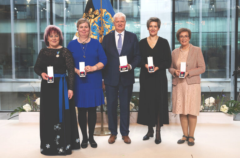 Kolmapäeval andis president Alar Karis Eesti Rahva Muuseumis üle tänavused teenetemärgid. Ühisele pildile on jäänud Jõgevamaalt tunnustuse saanud. Vasakult Laidi…