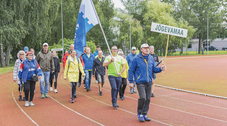 Jõgevamaa esindus mängude avatseremoonia rongkäigul Jõgeva linna staadionil. Maakonna sildiga veteransportlane Ülo Kuusk ja Jõgeva valla lipuga abivallavanem Asso Nettan.…...