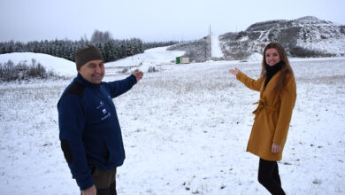 Kuningamäe spordikompleksi terviseraja meister Indrek Eensalu ja arendusjuht Mari-Liis Rümmel kohas, kuhu peaks tulema Põltsamaa ujula ja Kuningamäe teenindushoone. FOTO: TAAVI...