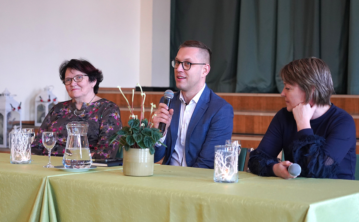 Arukate Akadeemias esinenud Jõgeva vallajuhid: abivallavanem Helle Kajaste, vallavanem Karro Külanurm ja abivallavanem Kristi Klaos. FOTO: RIINA MÄGI Jõgeva linna pensionäride ühenduse kutsele Arukate Akadeemia vestlusringi 14. jaanuaril Jõgeva vallavanema Karro Külanurme ja abivallavanemate Helle Kajaste ning Kristi Klaosega vastasid väga paljud ning kultuurikeskuse saal oli kolmapäeval rahvast täis. Arutluse teemaks oli „Mis teoksil Jõgeva…