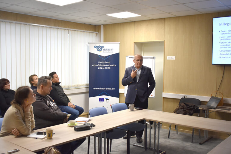Kesk-Eesti ettevõtlusinkubaator korraldas kesknädalal Jõgevamaa Arendus- ja Ettevõtluskeskuses aasta esimese kohvihommiku. Teemaks oli innovatsiooni juhtimine teaduse, äri ja kultuuride ristteel. Esines arstiteadlane ja rahvusvahelise kogemusega tippjuht Margus Annuk. FOTO: TAAVI KELDER