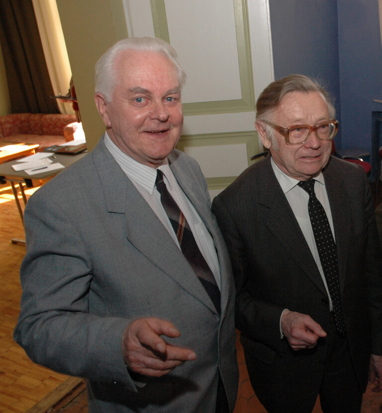 Kauaaegne ajalooõpetaja Eino Veskis (vasakul) on Kuremaa lossis toimunud konverentsile ühele pildile jäänud koos ajaloodoktori Helmut Piirimäega. FOTO: ANATOLI MAKAREVITŠ ‘Kirjanik Viivi Luik oma „Kuldses kroonis“ on öelnud, „et ükski elu pole omaette ega eraldi. Iga elu mõjutab ja muudab…...