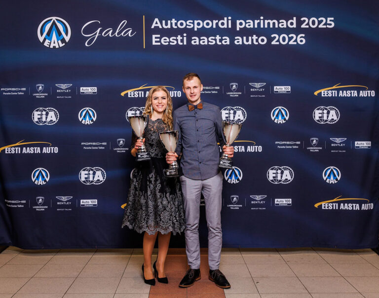 Rahvaralli Eesti meistrid Estrit ja Elvis Leinbergid pärast võidukarikate kättesaamist. FOTO: EAL Tallinnas Unibet Arenal anti kätte 2025. aasta autospordihooaja tiitlid ja rahvaralli 2wd-ve arvestusklassis tulid Eesti meistriks Estrit ja Elvis Leinbergid.Mitmekülgse sportlasena tuntud Estriti sõnul jäi neil 2025 hooajal…...