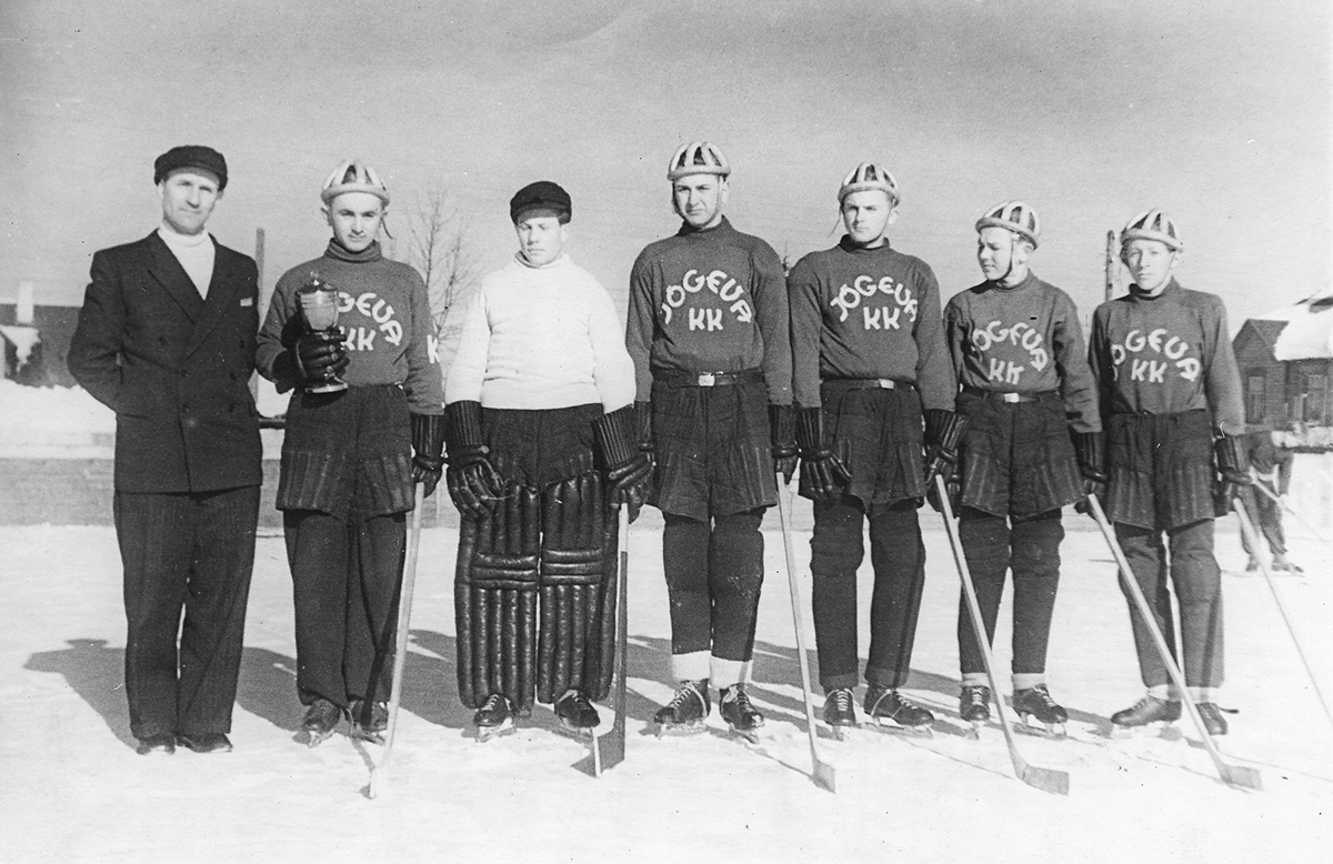 Treener Valdur Rajalo (vasakul) 1951. aastal meistriks tulnud meeskonnaga. FOTO: ERAKOGU Jõgeva jäähoki isa Valdur Rajalo ehk lihtsalt Rajalo Ets oli väikelinna Jõgeva ajaloo üks värvikamaid tegelasi. Tundub uskumatuna, mida see õppinud plekkseppmeister, kes mõnda aega keskkoolis kehalise kasvatuse tunde andis, suutis treenerina saavutada. TIIT LÄÄNE Rajalol oli kaks suurt armastust – jalgpall ja jäähoki….