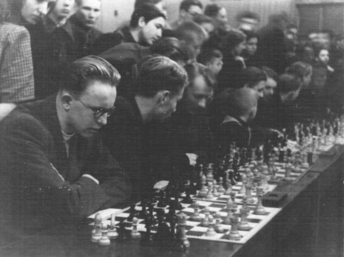 Valdur Tiit (vasakul) mängimas 1949. aastal simultaanis Paul Kerese vastu. FOTO: ARHIIV Esimene Jõgeva maletaja, kes saavutas edu vabariiklikel võistlustel ja jõudis mängima ka väljapoole Eesti piire, oli Valdur Tiit (1931–2019). 1950. aastal Jõgeva keskkooli kuldmedaliga lõpetanud Tiit saavutas males silmapaistvat edu, kuid asunud seejärel õppima Tartu ülikooli, keskendus ta hilisemas elus teadustööle. TIIT LÄÄNE…