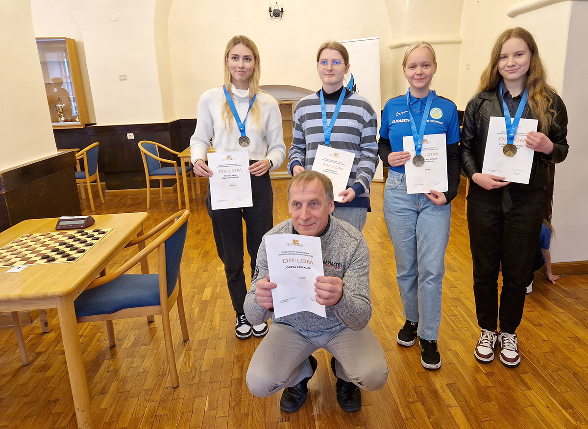 Eesti noortemeistriks tulnud Jõgeva kabeklubi võistkond koos treener Arno Uutmaga. FOTO: EVE VUTT Tallinnas peetud Eesti noorte võistkondlikel meistrivõistlustel 64-ruuduses kabes võitis täiseduga esikoha Jõgeva kabeklubi võistkond koosseisus Triinu Jalg, Nona Nano, Elisabeth Valdmann ja Eliise Kõrgessaar. Võit tuli Jõgeva Nõmme kabeklubi I ja Nupuklubi ees. Turniiril osales kaheksa võistkonda ja Jõgeva saavutas võidu kõigis…