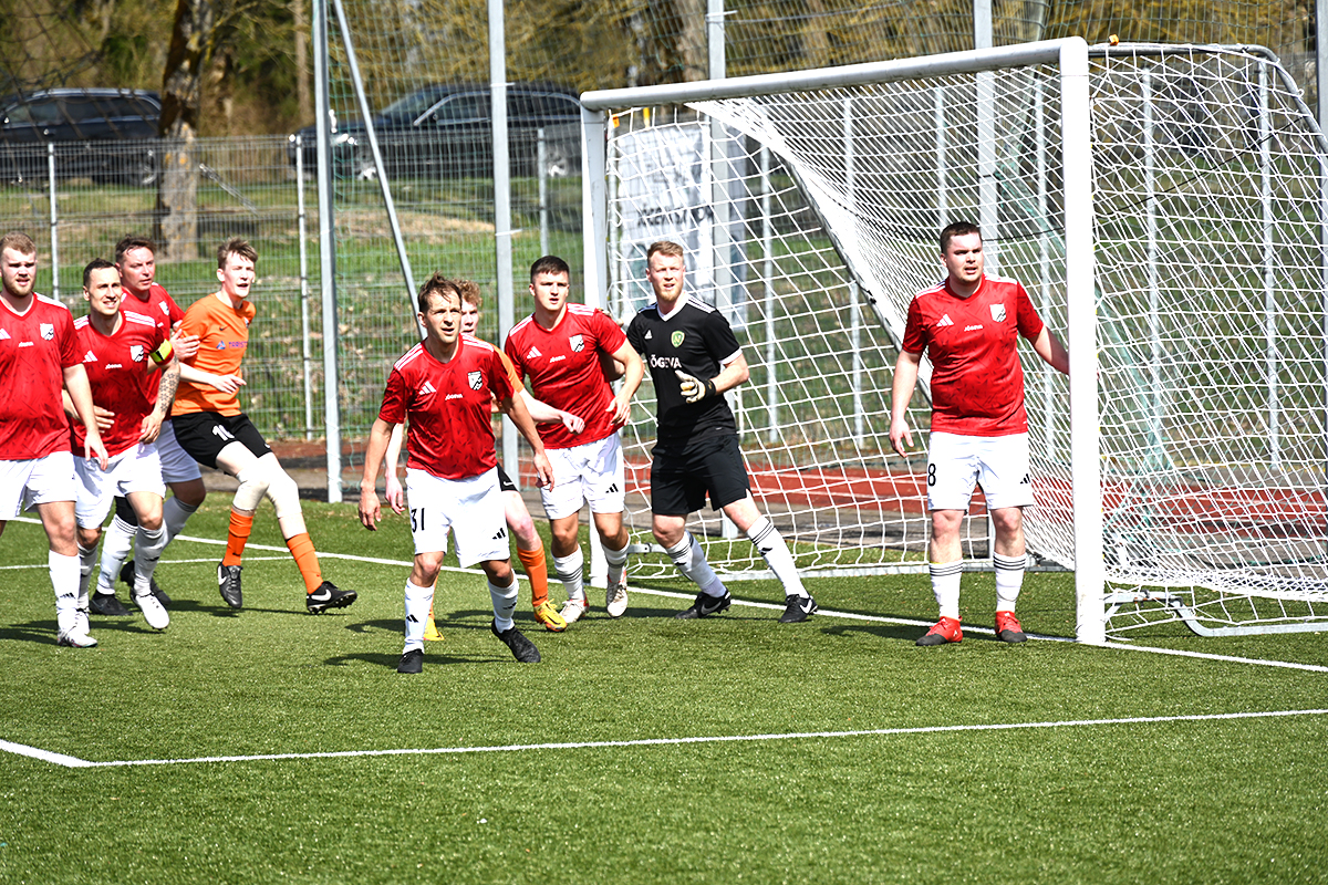 Jõgeva meeskond (punastes särkides) tegemas kaitsetööd FC Kose nurgalöögi eel. Vasakult alates on Jõgeva mängijatest pildile jäänud Marcus Mardimäe, Jürgen Hiljurand, Kristjan Kuldmägi, Priit Jõeäär, Raul-Martin Sirkas, väravavaht Karli Kütt ja Karl Lani. FOTO: TIIT LÄÄNE Jalgpalli Eesti meistrivõistluste II liiga B-tasandil jätkab lõuna-ida ringkonnas jätkuvalt edukalt Jõgeva SK Noorus-96 meeskond. Möödunud laupäeval alistati Vaimastvere…