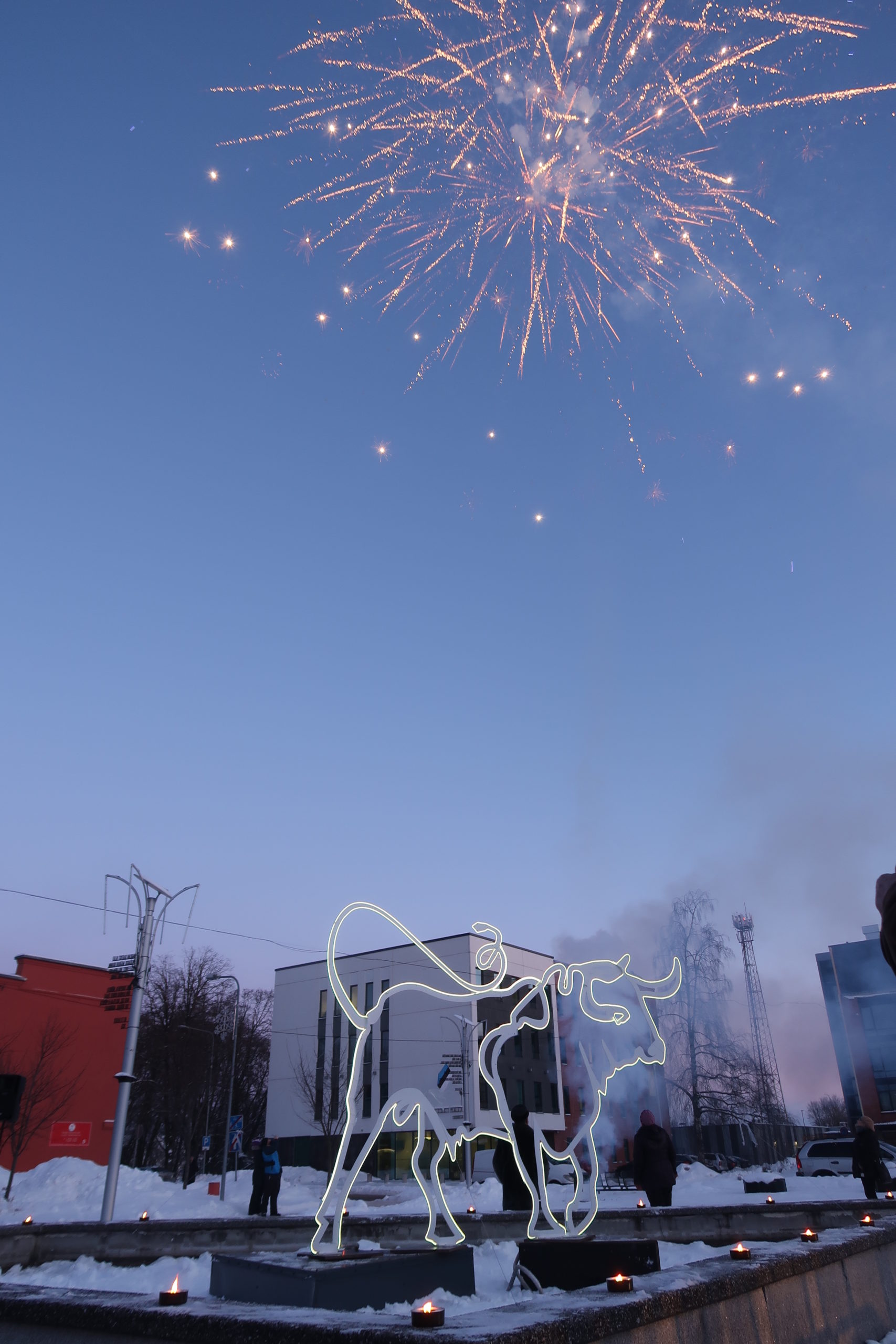 Täna tervitati Jõgeva kesklinnas purskkaevu juures valge metallpühvli aasta algust ja avati valgusskulptuur. Skulptuur jääb esialgsete prognooside kohaselt linnapilti ilmestama aprilli lõpuni.