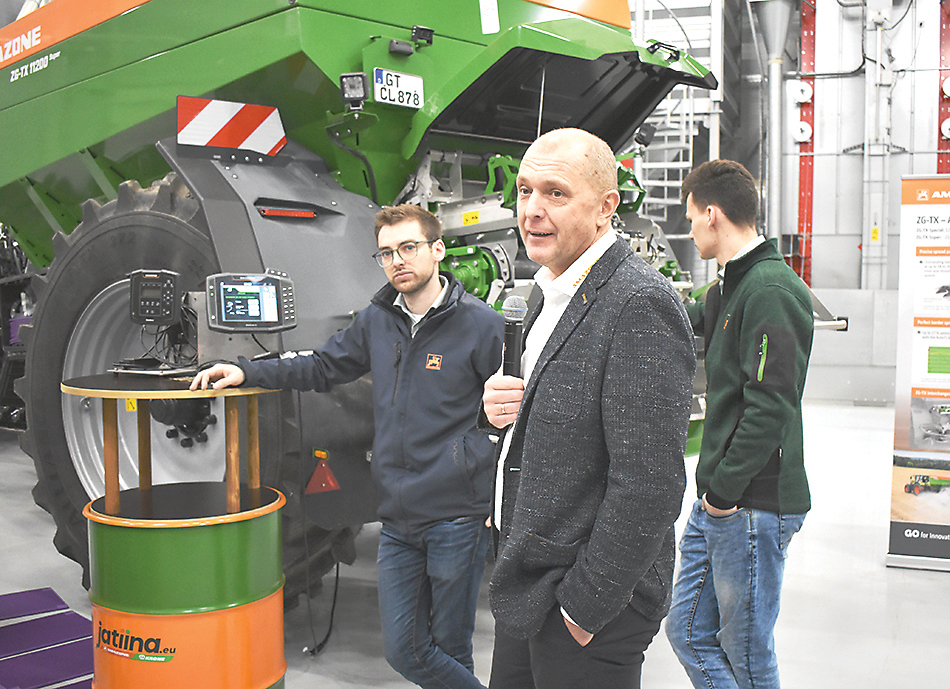 Jõgeva alevikus toimunud esitlusel tutvustas maaletooja OÜ Jatiina tegevjuht Jaanus Põldmaa väetisekülviku ZG-TX tehnilisi võimalusi. FOTO: TAAVI KELDER Möödunud teisipäeval leidis Maaelu Teadmuskeskuses aset Saksamaal toodetud uue järelveetava väetisekülviku ZG-TX ja iseliikuva taimekaitsepritsi Pantera 7004 esmaesitlus. Kohalike põllumeeste ja maaeluettevõtjate huvi ürituse vastu oli väike. TAAVI KELDER Saksamaa põllutöötehnikatootja Amazone on olnud aastaid juhtiv väetisekülvikute…