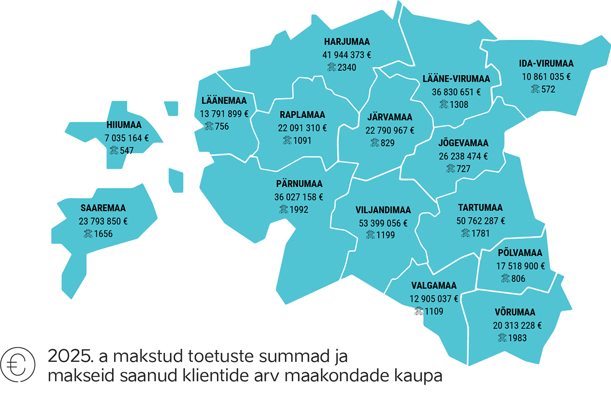 Möödunud aasta oli Põllumajandus ja Informatsiooni Ametile (PRIA) rekordiliste väljamaksetega. Aasta jooksul maksti üle Eesti ligi 19 000 kliendile välja erinevaid toetusi kogusummas üle 396,3 miljoni euro. Jõgevamaa oli maakondade hulgas kahjuks viimaste seas.PRIA peadirektori asetäitja Jaanus Hämmal peab mullust aastat väljamaksete osas rekordiliseks. Tema sõnul on toetustest olnud praeguses keerulises olukorras põllumajandustootjatele abi. 2025….