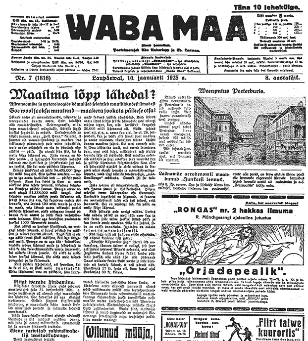 Ajalehe Waba Maa esikülg sada aastat tagasi Peterburi veeuputusest. FOTO: ERAKOGU Täna sada aastat tagasi, 10. jaanuaril 1925. aastal avaldas…...