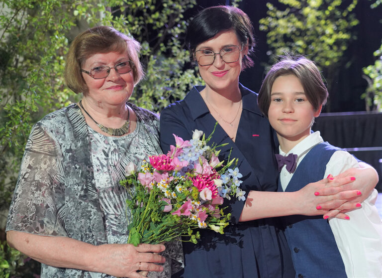 Maimu Valdmann koos dirigendist tütre Janne Fridolini ja tema poja Alfons Väljamäega. FOTO: RIINA MÄGI Pühapäeval Jõgeva kultuurikeskuses toimunud emadepäeva…...