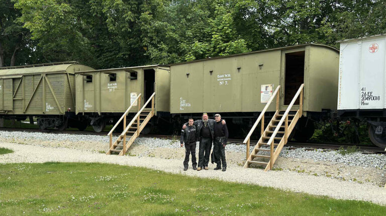 Must Leegion MC liikmed Viimsis seal asuvate soomusrongide ees. FOTO: ERAKOGU MADE SULTSON Möödunud võidupühal liikusid motoklubi Must Leegion MC…...