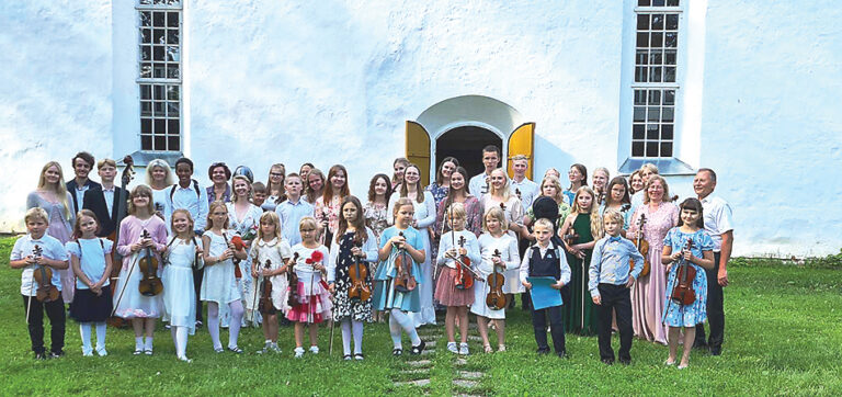 Karijärve keelpilliorkester möödunud pühapäeval Puhjas, vahetult pärast suvekoolijärgset galakontserti. Fotole jäid lisaks noortele muusikutele ka suvekooli õpetajad. Foto: Maarja Kärsin…...