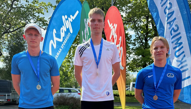 Noormeeste U20 vanuseklassi 400 meetri jooksus mahtusid esikolmikusse kõik tuntud sporditegijad. Vasakult Mattias Pihlak, Arti Põldes ja Rasmus Randoja. FOTO:…...