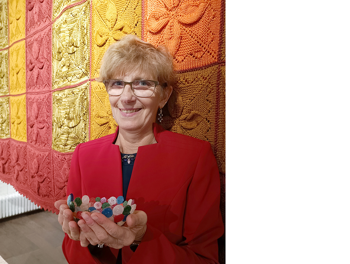 Anu Uudelti taustaks on kaunis ja värviküllane päevatekk ja pihkudes nööpidest tehtud kauss. FOTOD: TIINA SÄÄLIK Kõigil, kel huvi kauni käsitöö vastu, tasub sammud seada Palamuse O. Lutsu kihelkonnakoolimuuseumi koolimajja. Teise korruse saalis saab vaadata Anu Uudelti imekaunist näputööd. TIINA SÄÄLIK Anu Uudelti tööd olid tegelikult Palamusel näha juba mullu sügisel, kui peeti Paunvere väljanäitust…