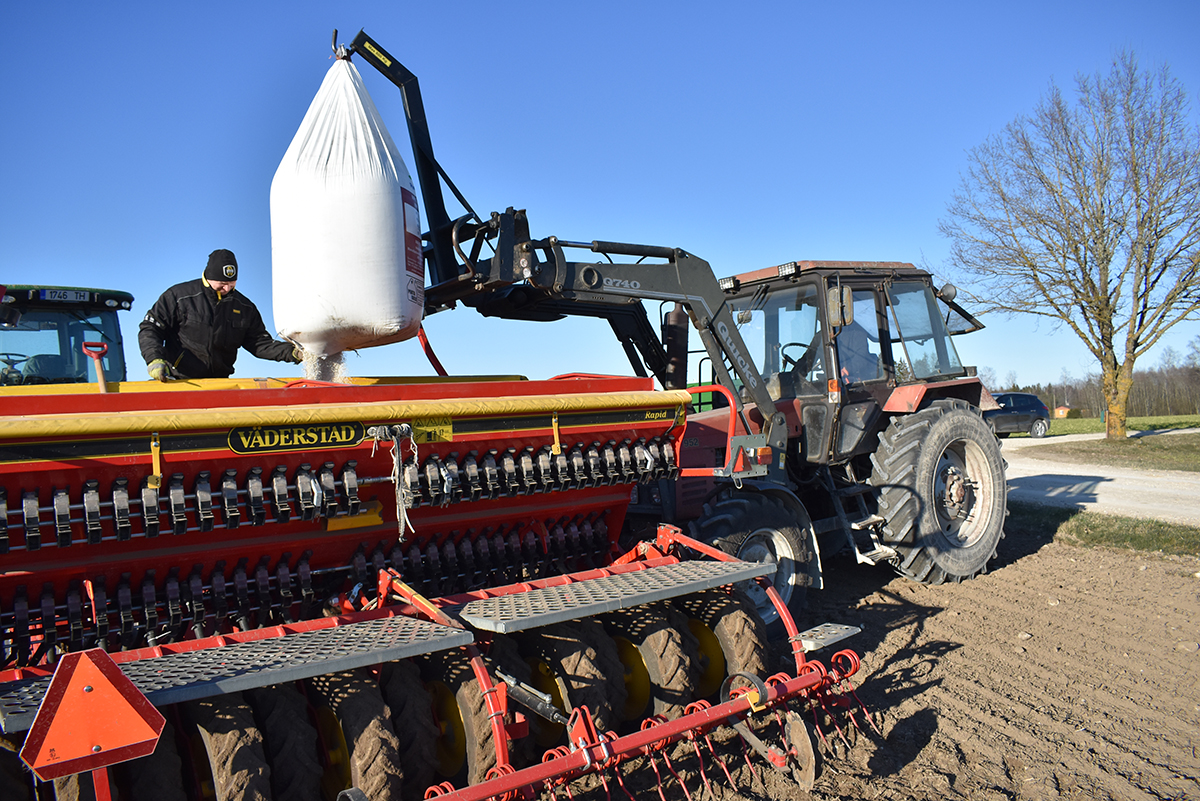 Sel kevadel külvati kokku 846 hektarile suviotra, 307-le suvinisu, 535-le hernest ja 75-le uba. Tõksi sõnul oli neil kevadtöödega kokku seotud 10–15 inimest.