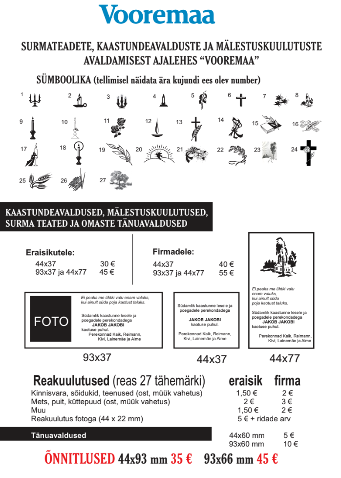 Kuulutuste eest esitatakse arve peale kuulutuse ilmumist ajalehes.