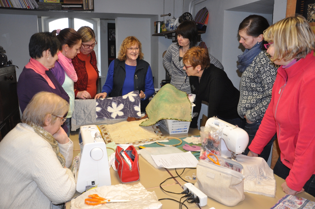 Pole ime, et Katre Arula soovis sellist väärtuslikku koolitajat nagu Elle Ikävalko ka Põltsamaa naiste ette saada. Ning tallinlanna oligi nõus tulema. Kaasas oli tal rohkesti valmis- ja proovitööde näidiseid, uudseid materjale ja töövahendeid ning terve virn välismaist erialakirjandust. Naised, kes koolitusele tulid, võtsid aga kaasa õmblusmasinad.