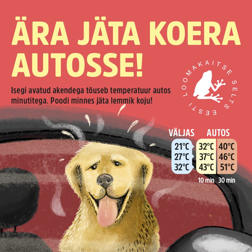 Koeraga ringi sõites kipub ikka juhtuma, et korraga turgatab pähe soov poodi minna. Mõtled, et käid ruttu ära ja jätad akna veidi lahti. Tegelikult tõuseb autos, ka veidi avatud aknaga, temperatuur minutitega kahekordseks. Samuti on inimeste ja loomade temperatuuritundlikus väga erinev. „Praeguste ilmadega looma jätmine autosse võib lõppeda kurvalt. Loom võib vajada turgutamist loomakliinikus või lausa surra. Nimelt kui koera temperatuur tõuseb liiga kõrgeks lakkab vereringe töötamast, mis toob omakorda kaasa neerude väljalülitumise, hapnikupuuduse ajus ja