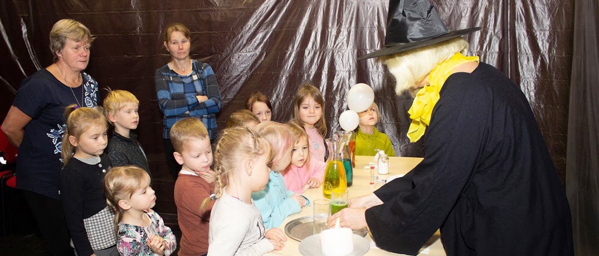 Kui lapsed Lustivere kultuurimajja jõudsid, ootas neid päkapikk Anette, kes juhatas lapsed muinasjuttude radadele. Kohe esimesena sattusid lapsed võluri koopasse, kus võlur koos abilistega erinevaid katseid tegi. Katsetati päkapikkude lennumasina jaoks lennusegu, uuriti, kuidas soost gaasid üles tõusevad ja põlevad ning lõpuks said lapsed endale ka õnne valada.