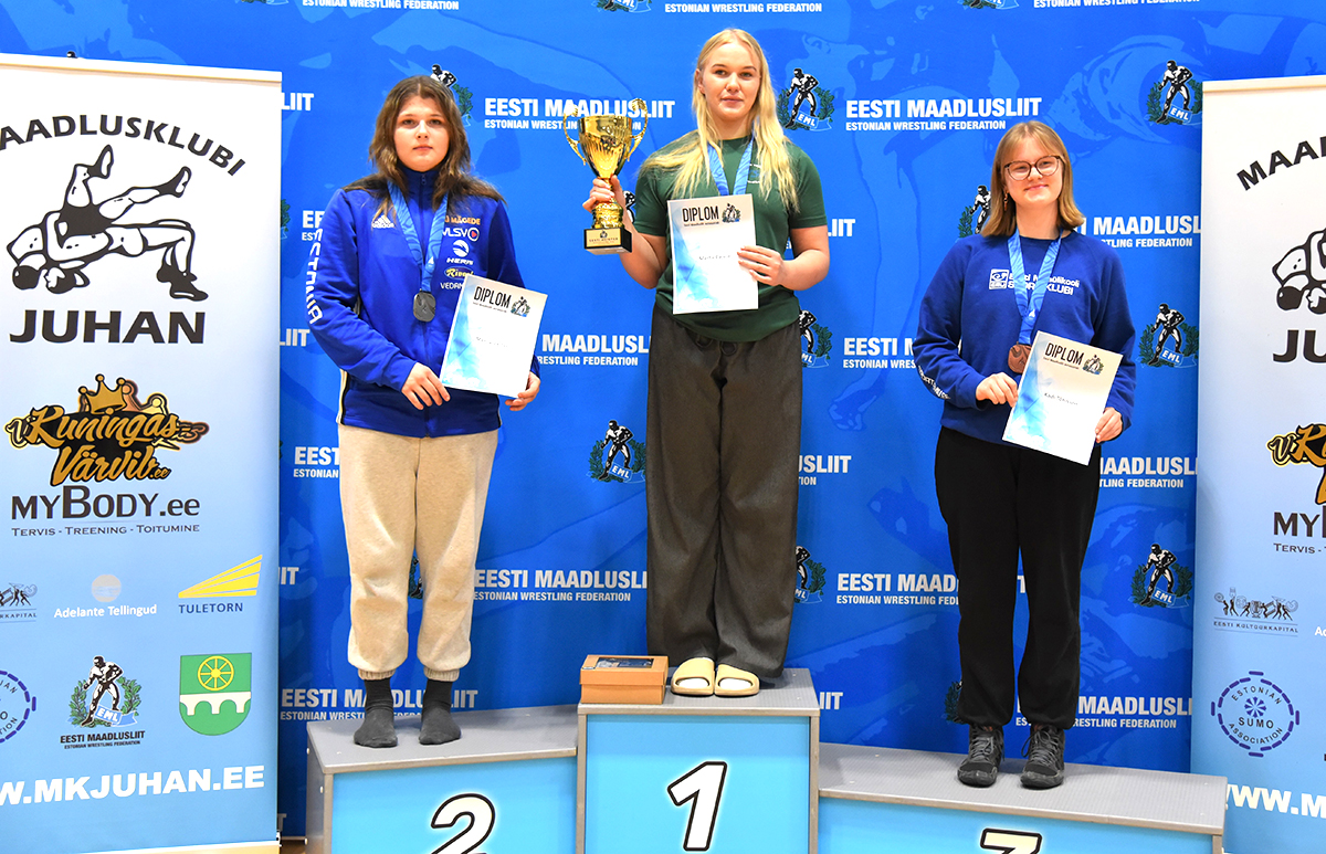 Merily Väster (vasakul) võitis raskekaalus hõbemedali. FOTO: ERAKOGU Märjamaa valla spordikeskuses toimusid laupäeval Eesti meistrivõistlused naiste-, vaba- ja Kreeka-Rooma maadluses. 145 võistleja seas oli ka kaks Jõgeva Ramm/ Jõgeva VSK maadlejat ning 8 Põltsamaa SK Nipi maadlejat. Maakonda toodi kamba peale kaks hõbedat ja kolm pronksi. Naistemaadluses kehakaalus kuni 50 kg võitis hõbeda Eha Ester…