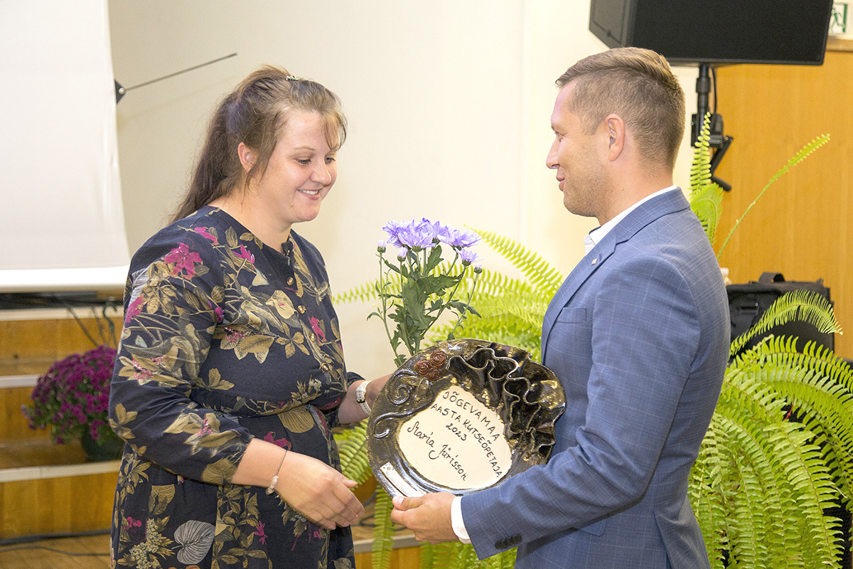 Jõgevamaa aasta kutseõpetaja tiitli andis Luua metsanduskooli õpetajale Maria Jürissonile üle JAEK-i nõukogu esimees Karro Külanurm. FOTO: LEA PIHLAK Möödunud reedel kogunesid Jõgevamaa haridustöötajad Jõgeva kultuurikeskusesse, et veeta enne kooliaasta algust ühiselt üks mõnus päev. Kuulati väärt ettekandeid ja jagati tunnustust. EVELYN SEPP TIINA SÄÄLIK Riigimees Nelson Mandela on öelnud: „Haridus on kõige tugevam relv,…