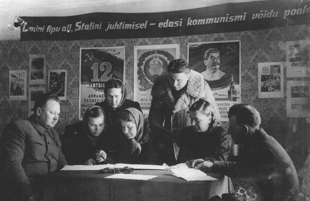 Nii käisid Jõgeva vallas ettevalmistused 12. märtsil 1950 toimunud NSV Liidu Ülemnõukogu valimisteks. FOTO: TIIT LÄÄNE ARHIIV Ajalehe Kolhoosniku esimesel ilmumisaastal täitsid leheveerge sütitavad hüüdlaused, millised kutsusid tugevdama sotsialistlikku võistlust. Näiteks Põltsamaa vallas undasid kolhoosides rehepeksumasinad, kottidesse voolas kuldseid teri. Kõik selleks, et täita riigile viljavarumise plaan. VAMBOLA PAAVO Kuremaa vallas käisid ettevalmistused suhkrupeedi koristamiseks….