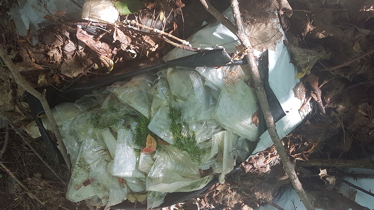 „Ümbruse järgi hinnates on jäätmed olnud looduses vähemalt paar aastat, kuna kotte katsid eelmise ja võib-olla ka üle-eelmise aasta lehed, samuti olid kõrval olnud muude jäätmete pakendid rabedad ja pudenesid. Lisaks meditsiinijäätmetele oli nimetatud hunnikus ka vanu piimapakke, millel hind kopikates. Samuti leidus seal vanu pudeleid,“ ütles Kukk.