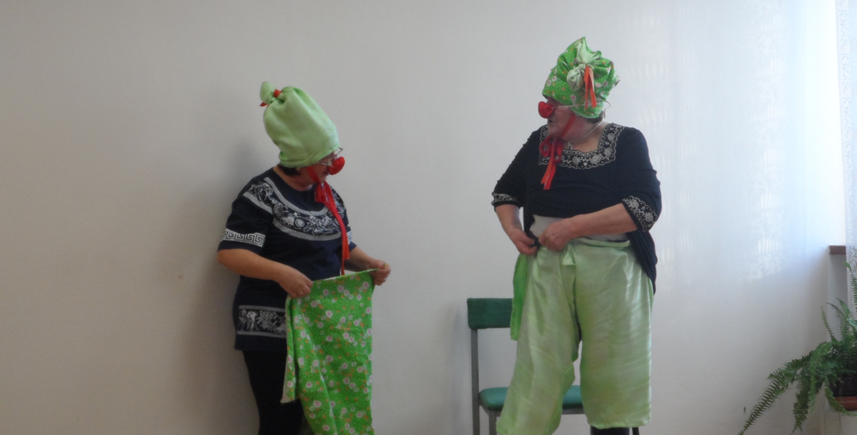 Lustlik klounipaar Eve Tepaskent ja Elvi Karus olid  peoks hoolega valmistunud: kostüümid olid justkui äsja nõelasilmast tulnud, laulud-tantsud olid selged ning luuletused ja naljalood kenasti peas. Nende naljasoonega prouade põhimõte on, et naeru ja naeratusi võiks elus alati rohkem olla, sest rõõmsalt elada on kergem nii naistel kui meestel.