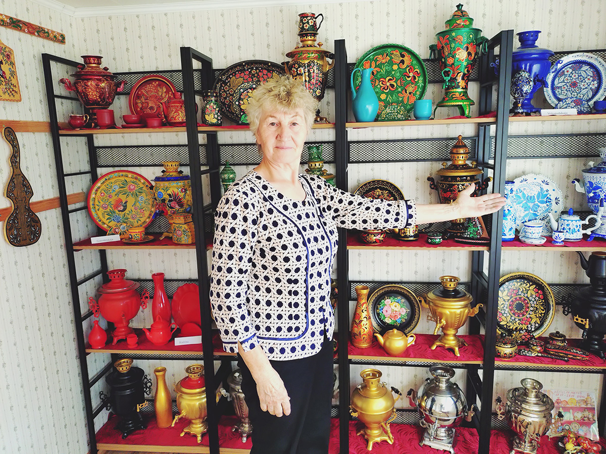 Natalja Tumanova kodumaja osas, mis on muuseum, enda maalitud samovarikomplektide ees. FOTO: MADE SULTSON Mustvee valla elanik Natalja Tumanova on koos abikaasa Sergeiga loonud mitmeid põnevaid käsitööesemeid ja kauneid pilte. Kalaluudest loodud pildid olid äsja MTÜ Logovesti Tumanovite käsitöönäitusel vaatamiseks ka Kasepää rahvamajas. MADE SULTSON Joosep Kivi, Natalja Tumanova vanaisa, oli eri võimude ajal Lohusuu…