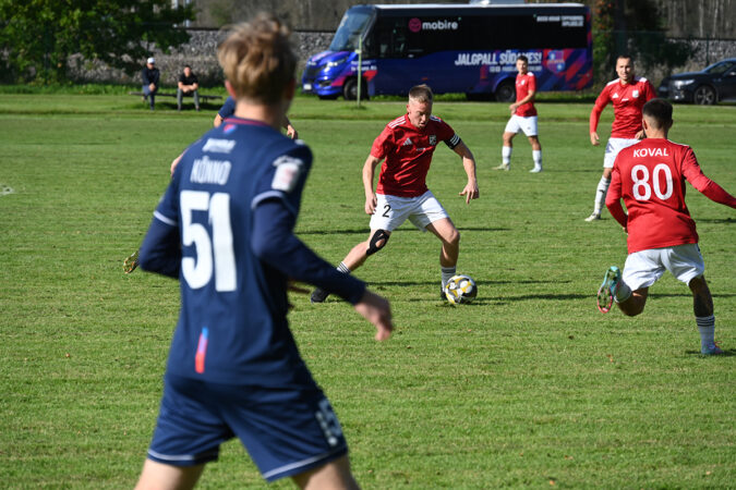 Hetk laupäevasest mängust Jõgeva aleviku staadionil. Pall on Nooruse meeskonna kapteni Andro Lepa (nr 2) käes, kes lõi ka võiduvärava. FOTO: TIIT LÄÄNE Jalgpalli Eesti meistrivõistluste II liiga B-tasandi turniiril sai Jõgeva SK Noorus-96 laupäeval koduväljakul üliolulise võidu, kui alistas Paide linnameeskonna III koosseisu 1:0 (1:0). Neli vooru enne turniiri lõppu hoitakse nüüd 52 punktiga…