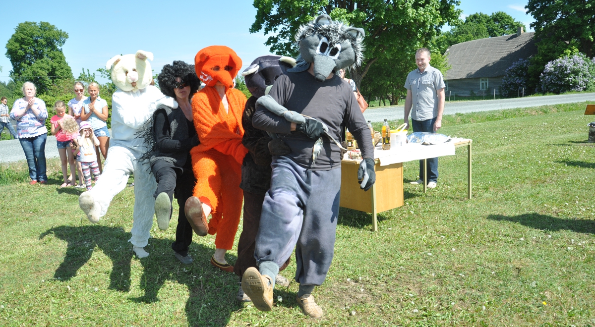Muinasjutupõllu avamispeole saabus ka eesti muinasjuttude tegelaste esindus: jänes, rebane, hunt, karu ja siil on meie loomajuttudes ju väga levinud tegelased. Nendeks olid kehastunud A-rühma liikmed Külli Annamaa, Kersti Vadi, Toivo Vadi, Kait Metsla ja Eda Orupõld. Muinasjutupõllul oli neil eriti tore lustida just seepärast, et nad olid selle valmimisele ise kaasa aidanud.