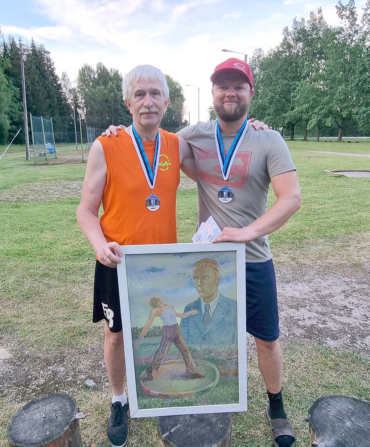 Esmakordselt võistluste ajaloos esikolmikust välja jäänud korraldaja Tiit Lääne ja viiendat korda kettaheite võitnud Andres Kangur seisavad võistluste igavesti rändava peaauhinna, Osvald Lääne õlimaali „Kettaheitja Otto Erimaa“ taustal. FOTO: ERAKOGU Laupäeval toimusid Paduveres 57. Otto Erimaa mälestusvõistlused kergejõustikus. 29-kraadises leitsakus toimunud võistlustel tegi seekord kaasa arvukalt noori. Lastejooksude (40 m) kiiremad olid Lumi Mai Tälli…