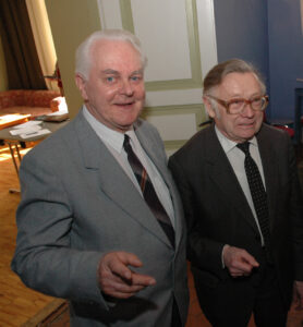 Kauaaegne ajalooõpetaja Eino Veskis (vasakul) on Kuremaa lossis toimunud konverentsile ühele pildile jäänud koos ajaloodoktori Helmut Piirimäega. FOTO: ANATOLI MAKAREVITŠ ‘Kirjanik Viivi Luik oma „Kuldses kroonis“ on öelnud, „et ükski…