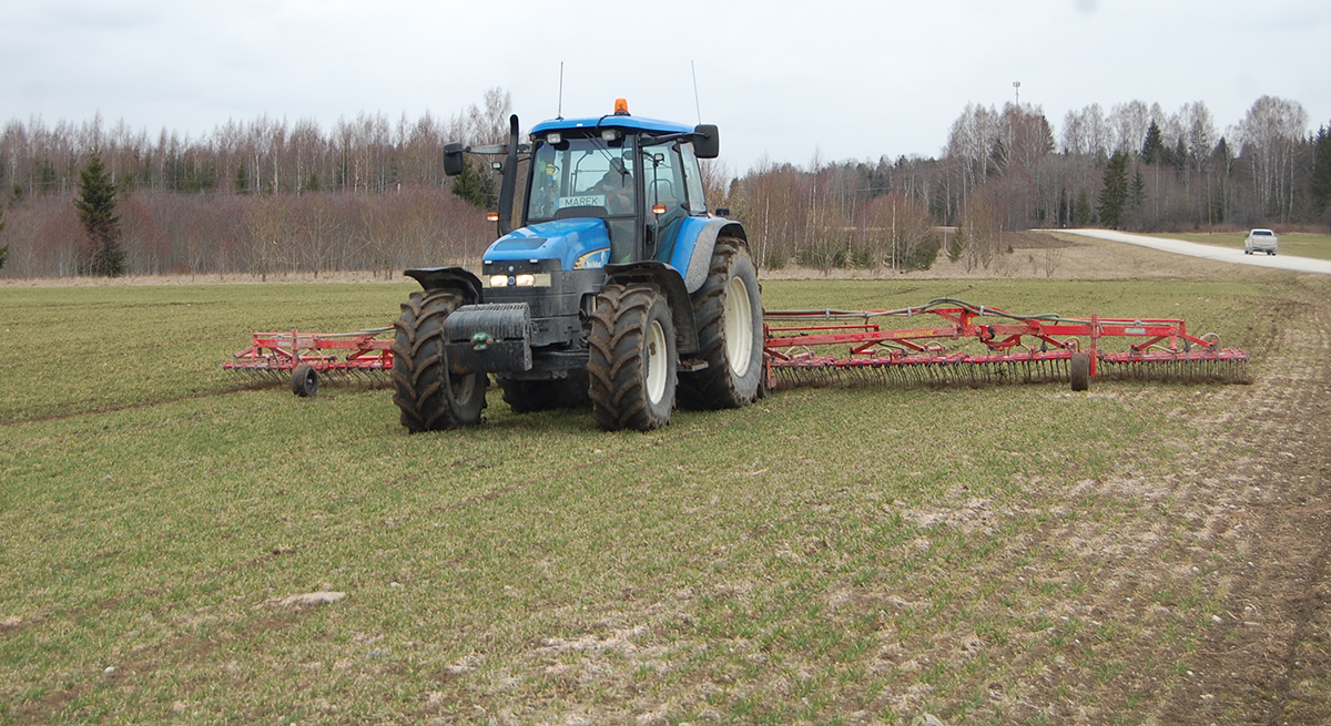 „Me oleme püüdnud esimesena alustada taliviljade väetamisest, millega tänavu tegime algust juba 2. aprillil. Kevad oli selleks hetkeks möödunud aastaga võrreldes natuke hilisem, aga põllud olid sedavõrd tahenenud, et oli võimalus väetisekülviga alustada. Samuti oleme teinud taliviljade äestamist. Talivilja on meil hetkel natuke alla 300 hektari,” rääkis põllumajandusettevõtte Pajusi ABF juhataja Lembit Paal.