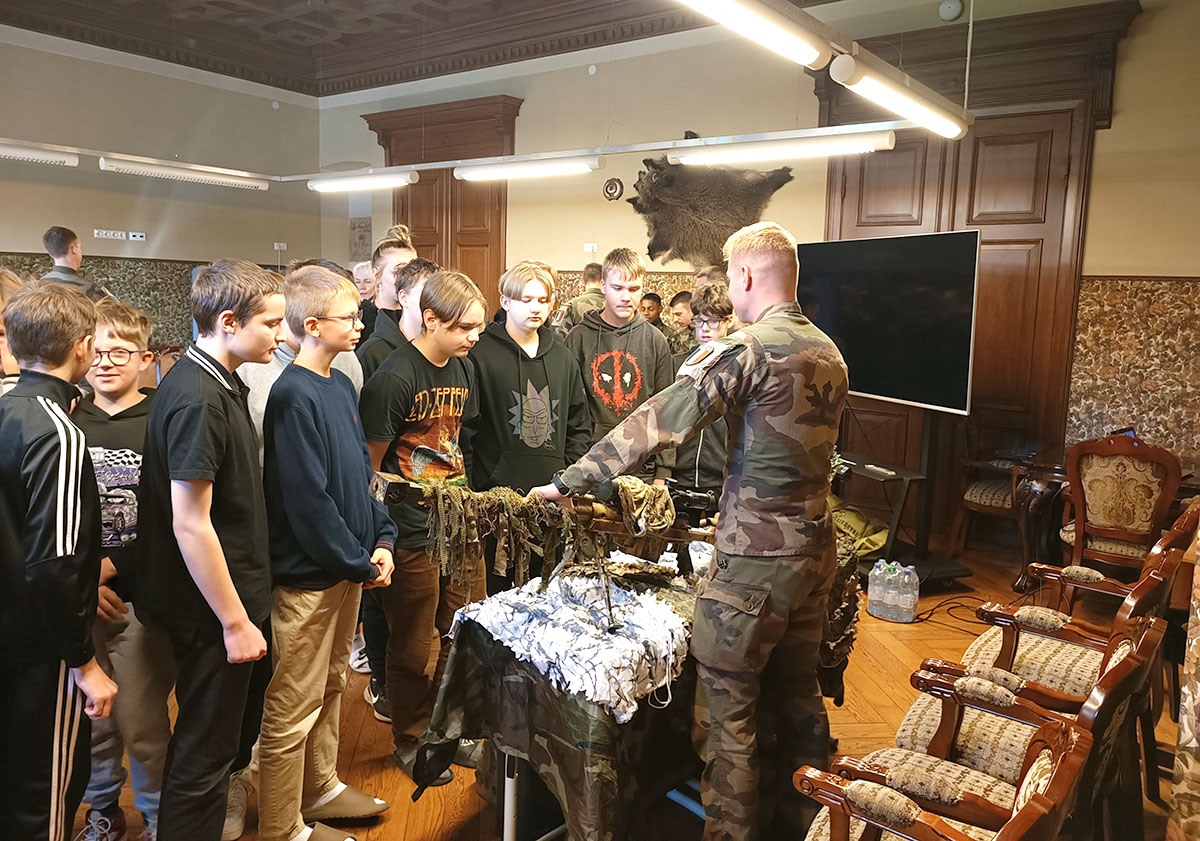 Snaiperi varustus pakkus huvi eelkõige noormeestele. FOTO: TIINA SÄÄLIK Teisipäeval toimus Puurmani mõisakoolis 7.–9. klassi õpilaste kohtumine lähedal Kirnal paikneva Prantsusmaa armee üksuse liikmetega. Kohal oli kümmekond langevarjurite üksuse sõdurit, kes tutvustasid oma varustust ja tegevusi. TIINA SÄÄLIK Kooli ja prantslaste kontaktid said alguse sellest, et viimased tundsid huvi, kas neil oleks võimalik kasutada sportimiseks…