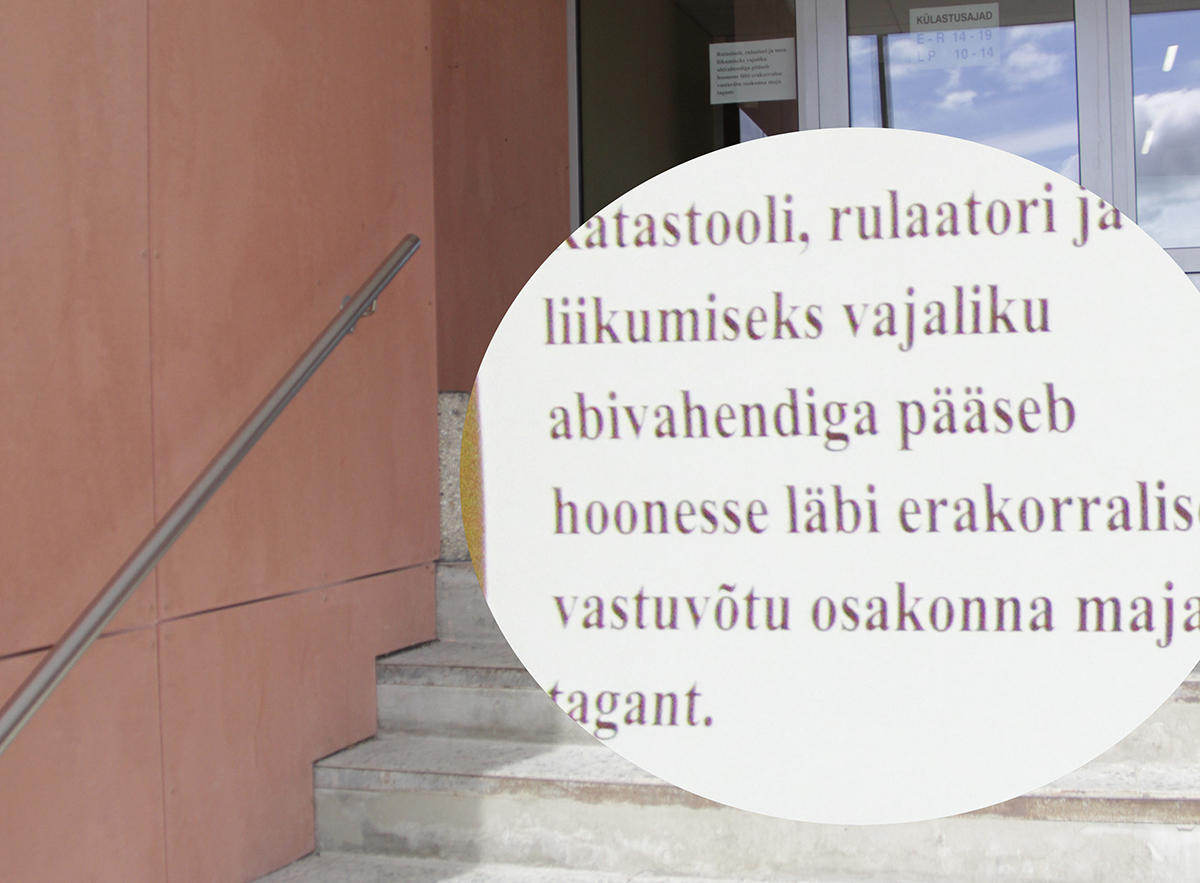 „Sees, ukse taga oli silt, et ratastooliga patsiendi puhul tuleb helistada. No hästi, võib-olla on kõigil ratastooliinimestel saatjad kaasas, kes kõigepealt saavad minna uurima, mis või kuidas, aga rulaatoritega käivad need ka, kes muidu ise hakkama saavad.