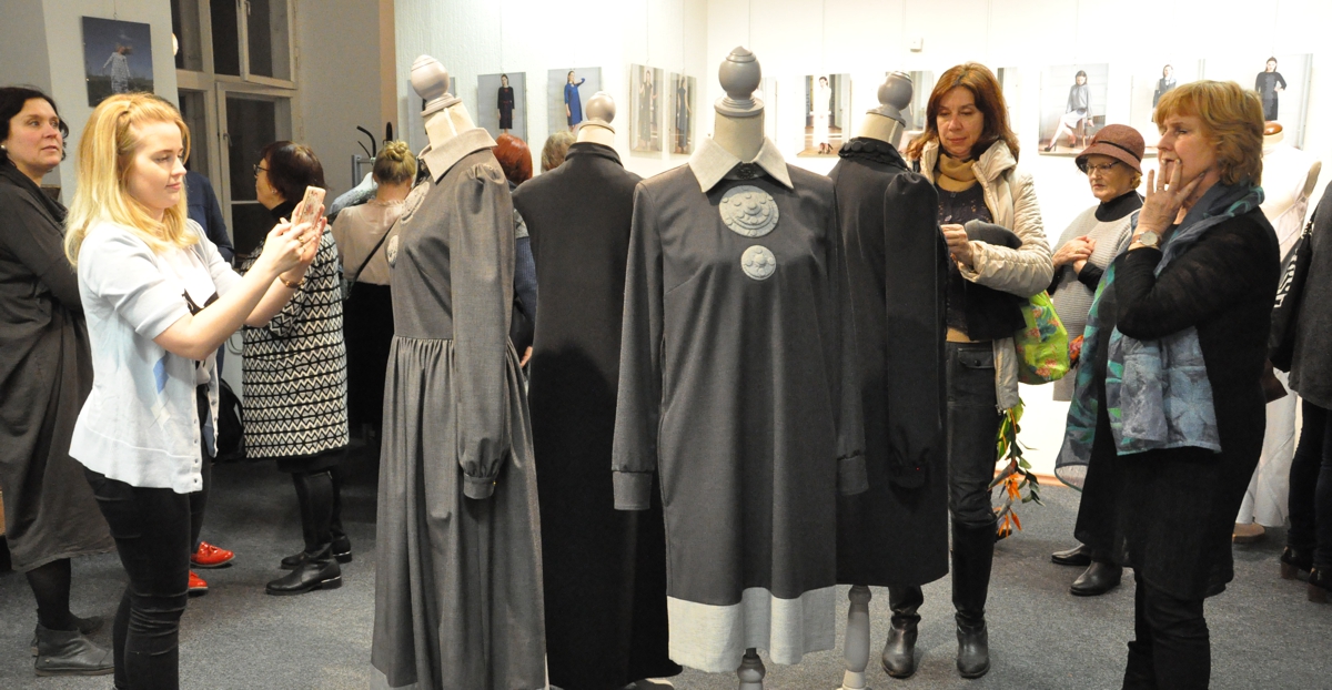 Üks modell, Anna Brit Vetsa (tema ema Karin on Eesti Rahvakunsti ja Käsitöö Liidu projektijuht), oli ka näituse avamisel.