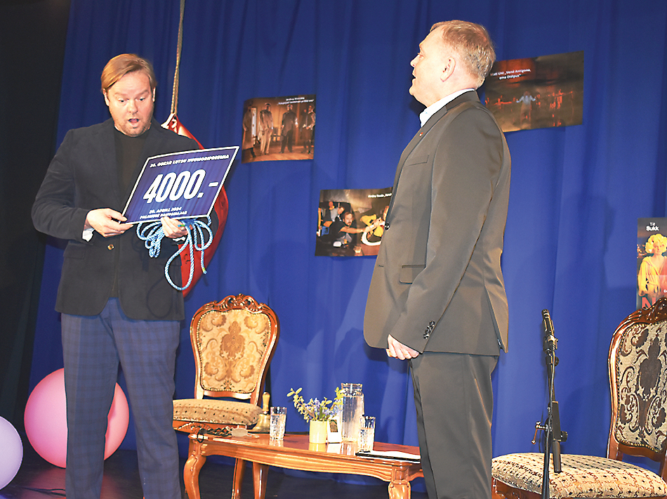 Oskar Lutsu huumoripreemiaga kaasnes 4000 euro suurune rahasumma, mille andis näitlejale pidulikult üle Ivar Vinkmann. Preemiasumma koguti rahva annetustest. FOTO: TAAVI KELDER Laupäeva keskpäeval anti Palamuse rahvamajas toimunud pidulikul auhinnatseremoonial üle 36. Oskar Lutsu huumoripreemia, mille pälvis Jõgevalt pärit näitleja Tiit Sukk, kes kogus sotsiaalmeedias toimunud rahvahääletusel enim hääli. TAAVI KELDER Huumoripreemia üleandmist juhtis ning…